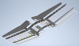 Alle im 3D-Modell dargestellten Bauteile sind im Bausatz enthalten. Zusätzlich enthalten sind sämtliche Schrauben und Muttern, das benötigte Harz, Baumwollflocken, Microballoon, Kohlefasergewebe zum Anlaminieren der Rippen und das benötigte Verbrauchsmaterial.