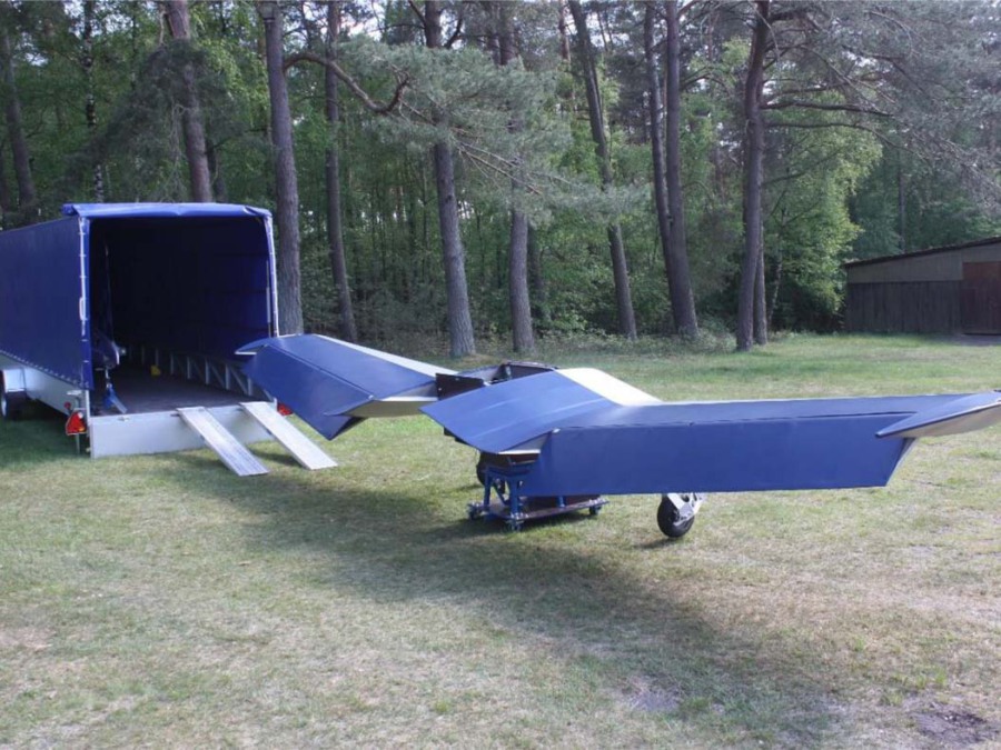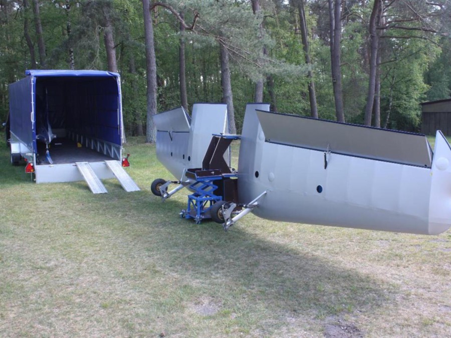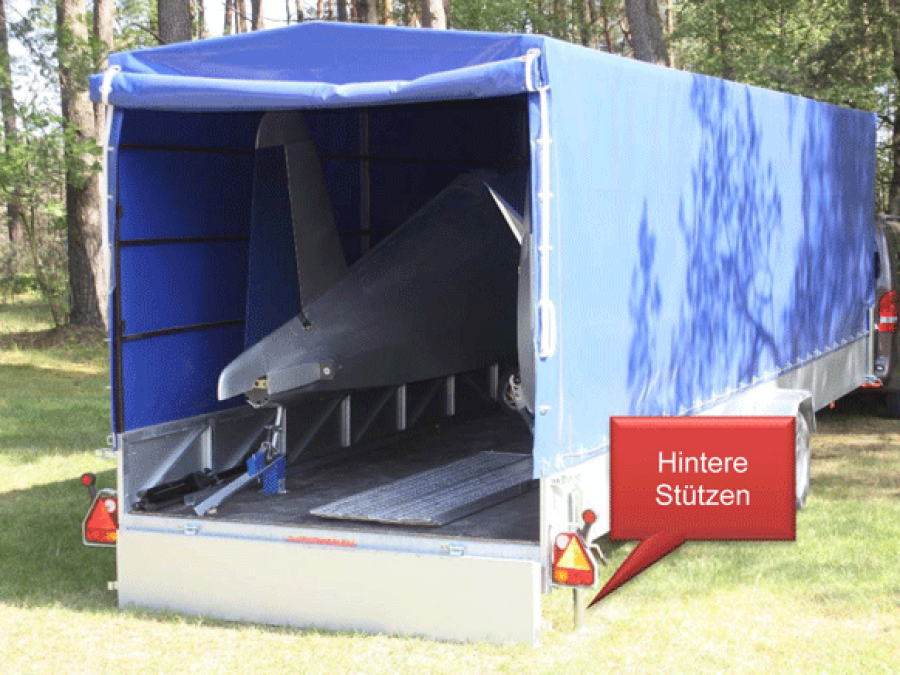 Sie ihn mit den hinteren Stützen und öffnen Sie den Hänger.