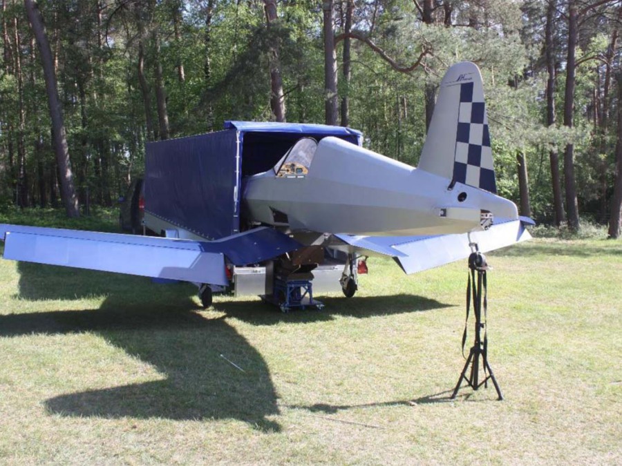 sicherzustellen, dass die Corsair auf ihren Hauptfahrwerksrädern steht und aus dem Rumpfwagen herauskommt.