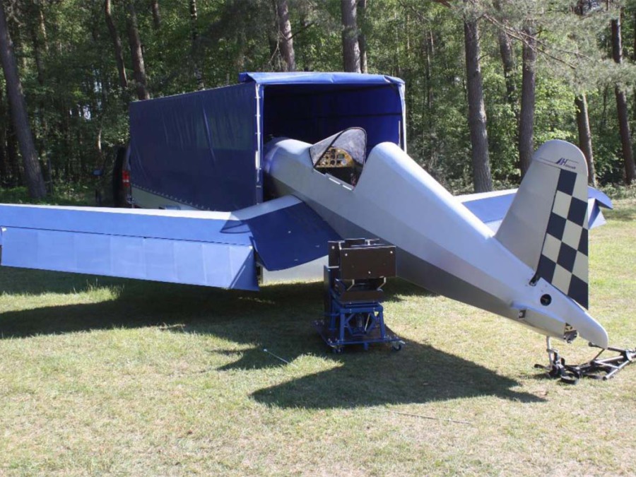 Rollen Sie das Flügelgestell beiseite und entfernen Sie die Spornradstütze. Es kann notwendig sein, die Rampen unter den Hauptfahrwerksrädern zu platzieren um
